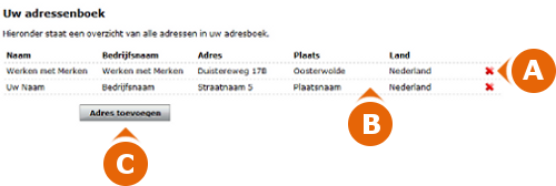 Hier kunt u uw adressen beheren op de volgende manieren: